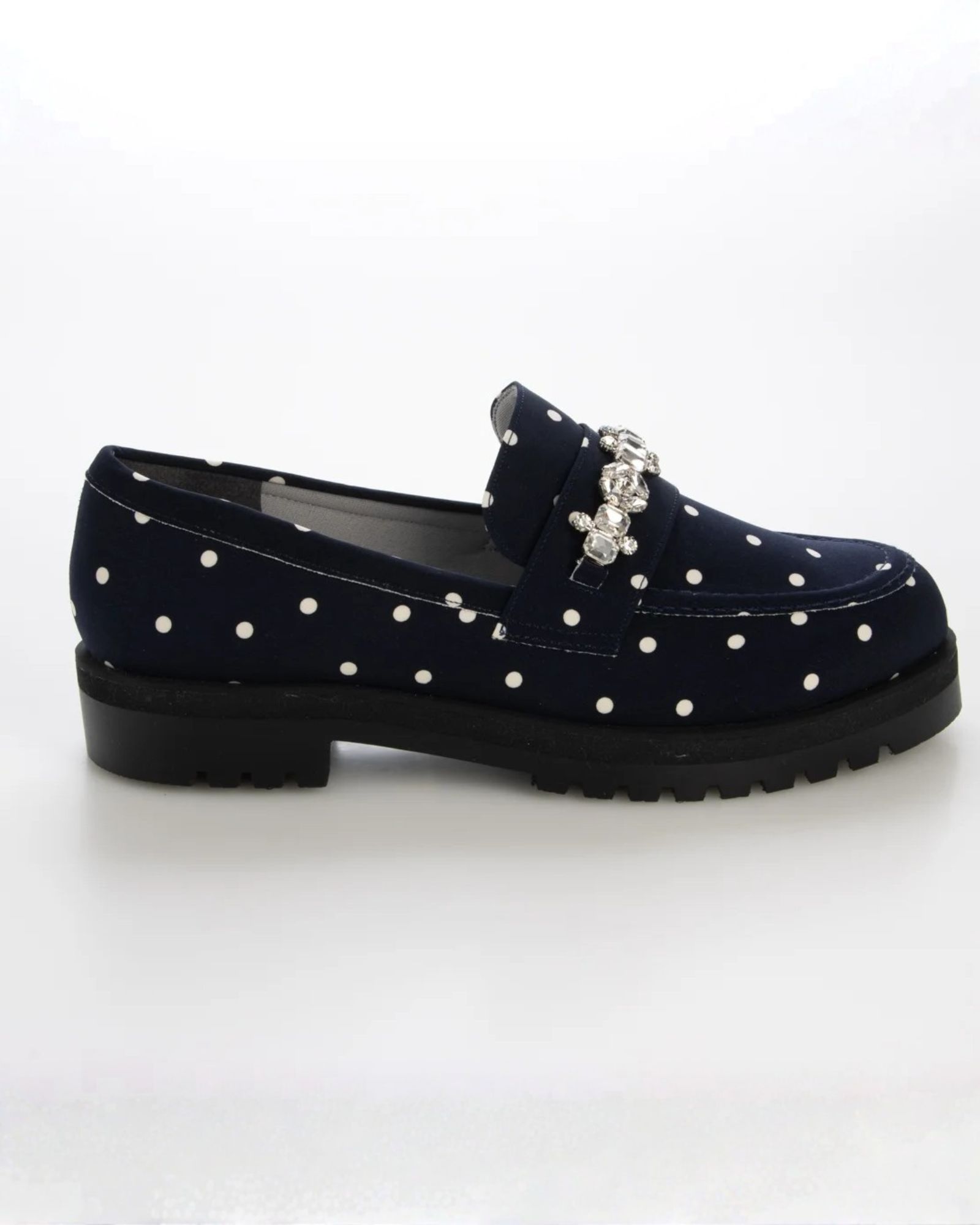 クラシックなローファーに繊細なビジューをあしらい、上品さと華やかさを両立した一足です。艶感のある素材と程よいボリュームソールが、コーディネートを引き締めながらスタイルアップも叶えます。パンツスタイルでハンサムに、スカート合わせでフェミニンに。デイリーからお出かけまで幅広く活躍する、シーズンレスな万能ローファーです。