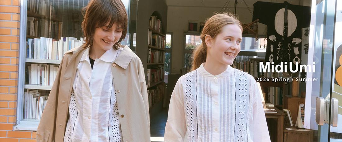 着る人の内面が出るシンプルさ 着る人が何時も生き生きするカジュアルさ 気取らない大人の普段着 それがテーマです。MidiUmi(ミディウミ)は、フランス語で南方を意味する "Midi" 、日本語の "海" からなる造語です。